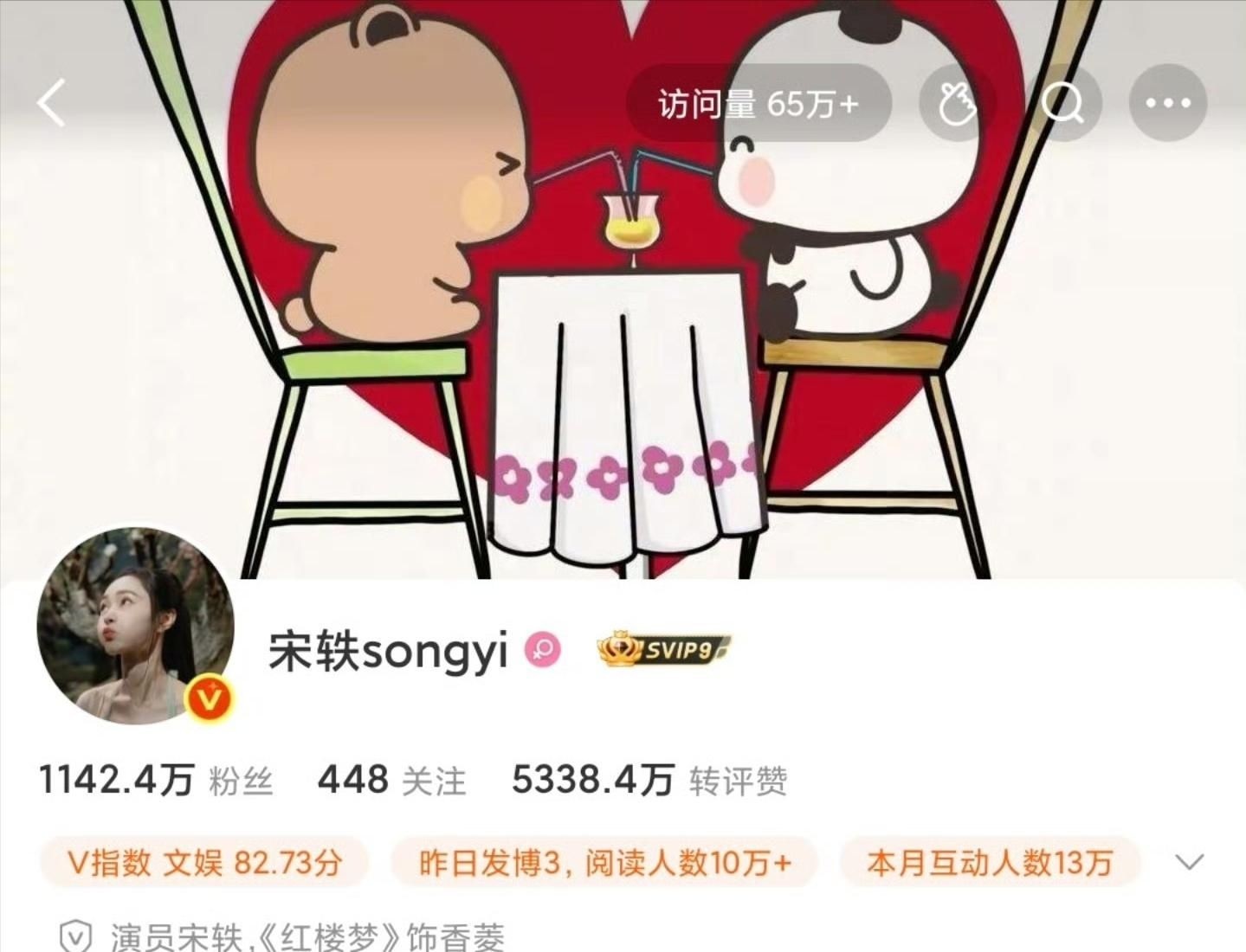 微博之夜落幕不久,2月13日,宋轶悄然更换微博封面图。新图绘有两个Q版卡通人物并肩而坐,共饮果汁,笑容灿烂,氛围温馨甜蜜。