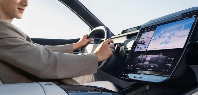 再来看内饰设计,车内设计表现得可圈可点,比如高精度的车载地图是全系标配,而且L2级别智能驾驶辅助系统也是全系标配。此外,分段式的大天窗,12.8英寸的中控屏,10.25英寸的下屏幕,这些全部都是标配。由于采用了电子外后视镜,所以说有着两侧屏幕显示器,用来显示车外的实景。