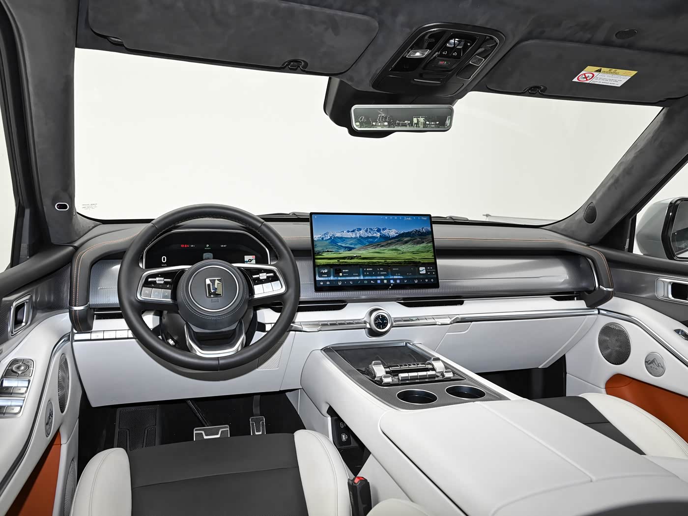 进入车内,坦克700新能源以“豪华科技+硬派实用”为核心,打造环抱式轻奢座舱,中控台配备全液晶仪表盘与大尺寸悬浮中控屏,搭载高阶车机系统,支持语音识别、多设备联动等功能,操作流畅便捷。空间表现极为出色,5门5座大五座布局搭配3000mm长轴距,车内空间充裕通透。身高185cm的体验者坐进前排,调整好驾驶位后,头部空间剩余一拳两指,视野开阔。